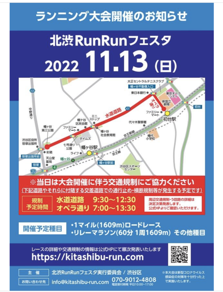 2022年11月13日(日)に渋谷区主催の「北渋RunRunフェスタ」というイベントが開催されます。