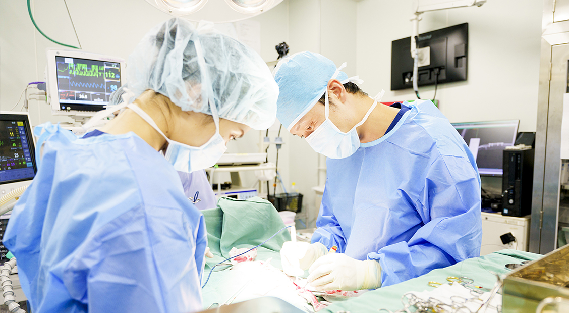24時間365日体制の救急診療体制を整えています。年末年始を問わず、夜間でも常に獣医師ならびに愛玩動物看護師が常駐しています。入院中の動物たちの治療や看護はもちろん、急な体調変化にも24時間対応いたします。