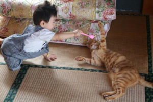 低い目線になります。しゃがんだりしてできるだけ猫と同じ目線の高さから写真を撮ると猫が主役の写真を撮ることができます。こっちを向いてくれない時はおもちゃで気を引きましょう。 おもちゃに向かって手が出るかもしれません(いわゆる猫パンチ) そんな瞬間もまた良い写真になるかもしれません。 それでも向いてくれない場合は、THE “ビニール袋”を使ってみてください 猫はビニールのガサガサ音が好きで反射的にそちらを向く子が多いのです。