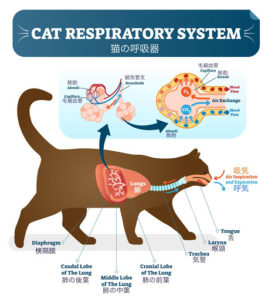 呼吸器のしくみ(構造)は空気の通路である気道系と【鼻・口、咽頭、喉頭、気管】ガス交換の場である肺胞系【気管支、肺】からなります。気道系では外気の加湿と加温を行い、冷たくて乾いた空気の流入を防いだり、気道に入った異物を排除するといった働きをしています。肺胞系では主に酸素を取り込み、二酸化炭素を排出するガス交換を行っています。 呼吸が速い時、この気道系のつまり(例えば鼻詰まりなど)が原因で起こる場合と、肺でのガス交換ができなくて(例えば肺水腫など)で起こる場合があります。