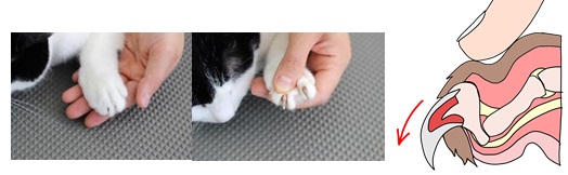 猫の爪は引っ込んでいるので、そのままでは爪は切れません。指の根元を上下からそっと押すと爪が出てきます。