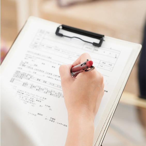 安全に、かつ、そのこの状態に適した施術を行えるように体調面や気になること、通院歴がある場合はその後の経過などについても細かくヒアリングします。